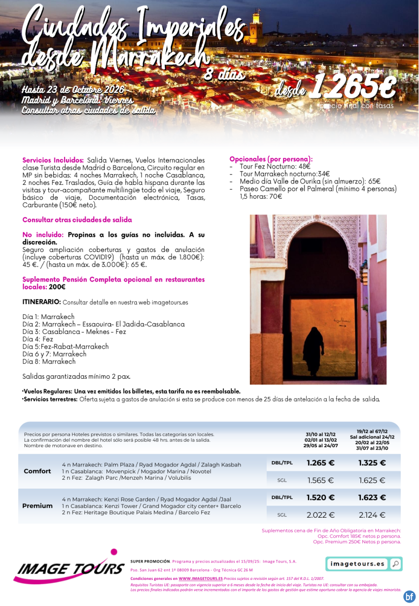 Marruecos: Ciudades Imperiales desde Marrakech, 8 días de viaje desde 1.265€ hasta octubre 2026